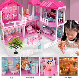 Rumah Permainan Kanak Kanak Dirakit Rumah Boneka Villa Boneka Barbie Set Puteri Puri Simulasi Rumah Gadis Mainan Shopee Malaysia