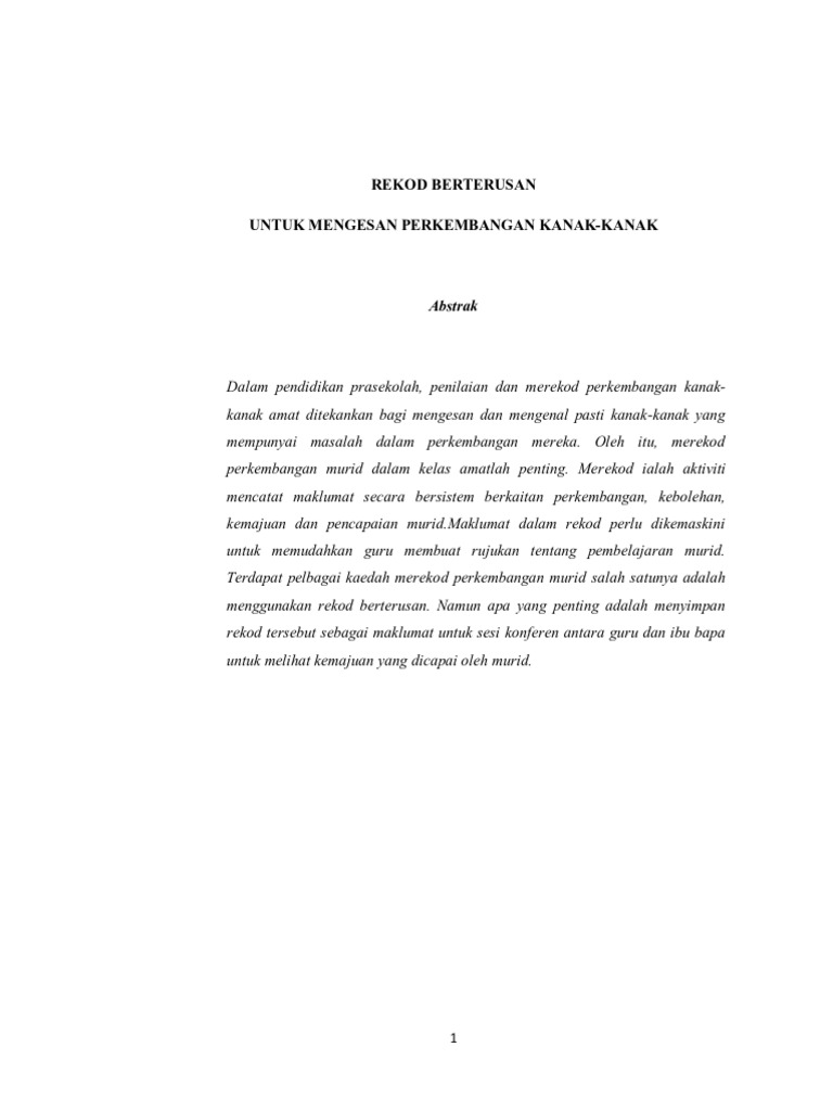Rekod Berterusan Untuk Mengesan Perkembangan Kanak Kanak