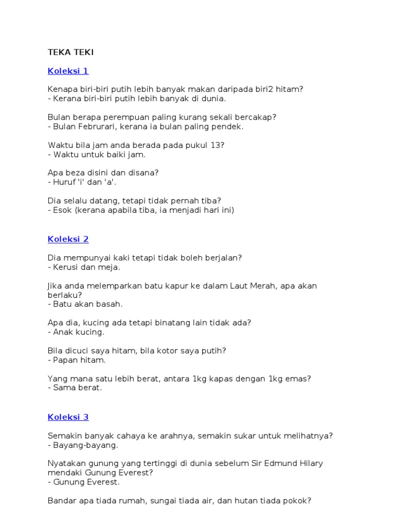 Bermacam Contoh Teka Teki Kelantan Yang Hebat Untuk Para Ibubapa Pekeliling Terbaru Kerajaan