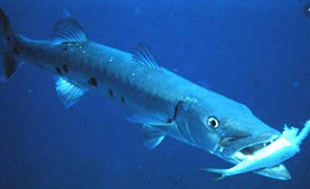 Ikan alu alu besar. Alu alu juga dikenali sebagai barakuda adalah ikan yang mempunyai bentuk badan memanjang dengan saiznya yang besar mulut yang menakutkan dan berkelakuan ganas. Alu alu tenuk kacang kacang mata besar. Ikan alu alu besar merupakan pemangsa kuat makan dan memburu menggunakan menunggu untuk menyerang hendap.