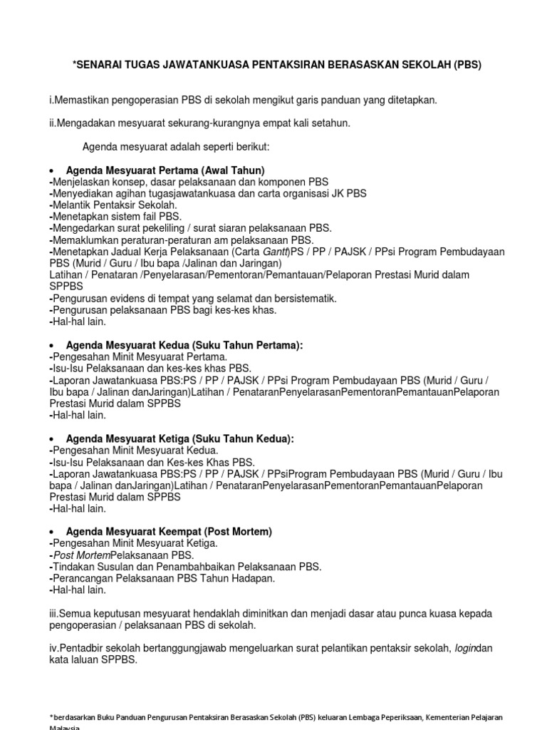Senarai Tugas Jawatankuasa Pentaksiran Berasaskan Sekolah Docx