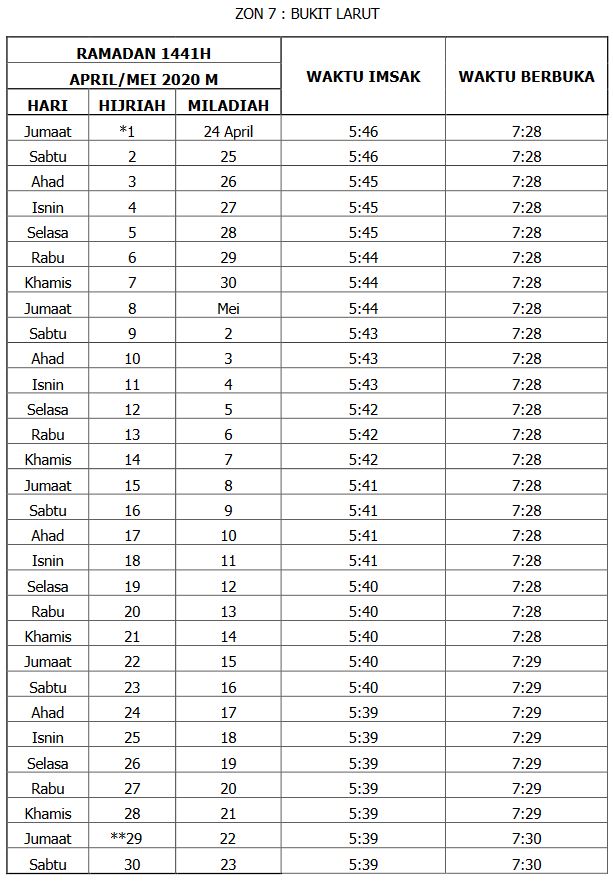 Perak 2020 Jadual Waktu Berbuka Puasa Dan Imsak