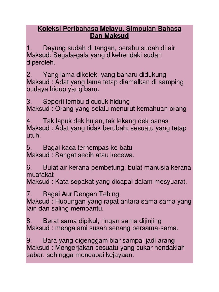 Koleksi Peribahasa Melayu Simpulan Bahasa Dan Maksud