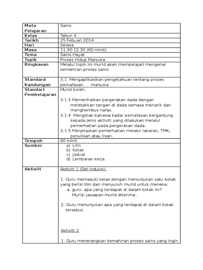3 1 Proses Pernafasan Manusia Tahun 4