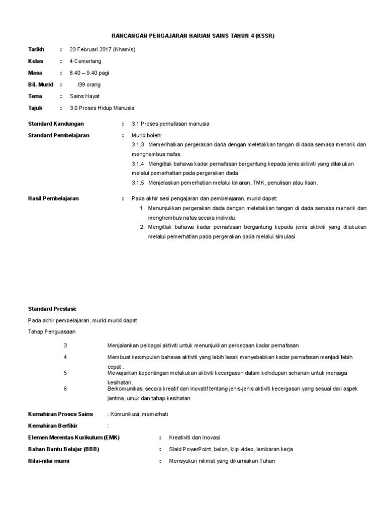 Rph Tahun 4 Pernafasan Manusia