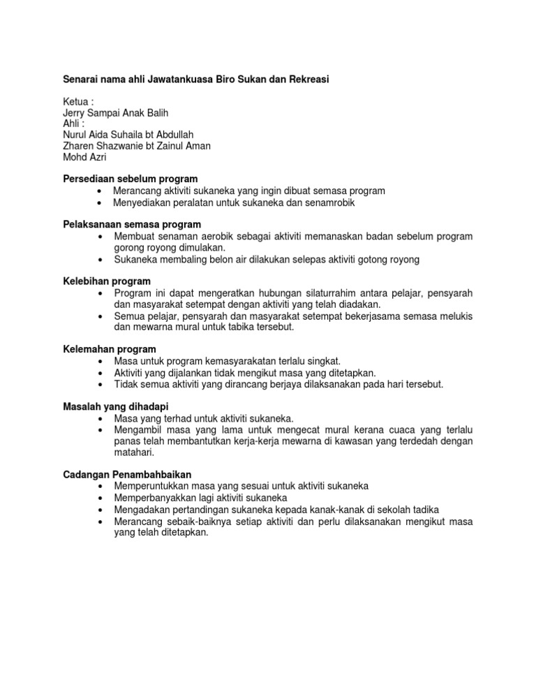 Contoh Laporan Biro Sukan Docx