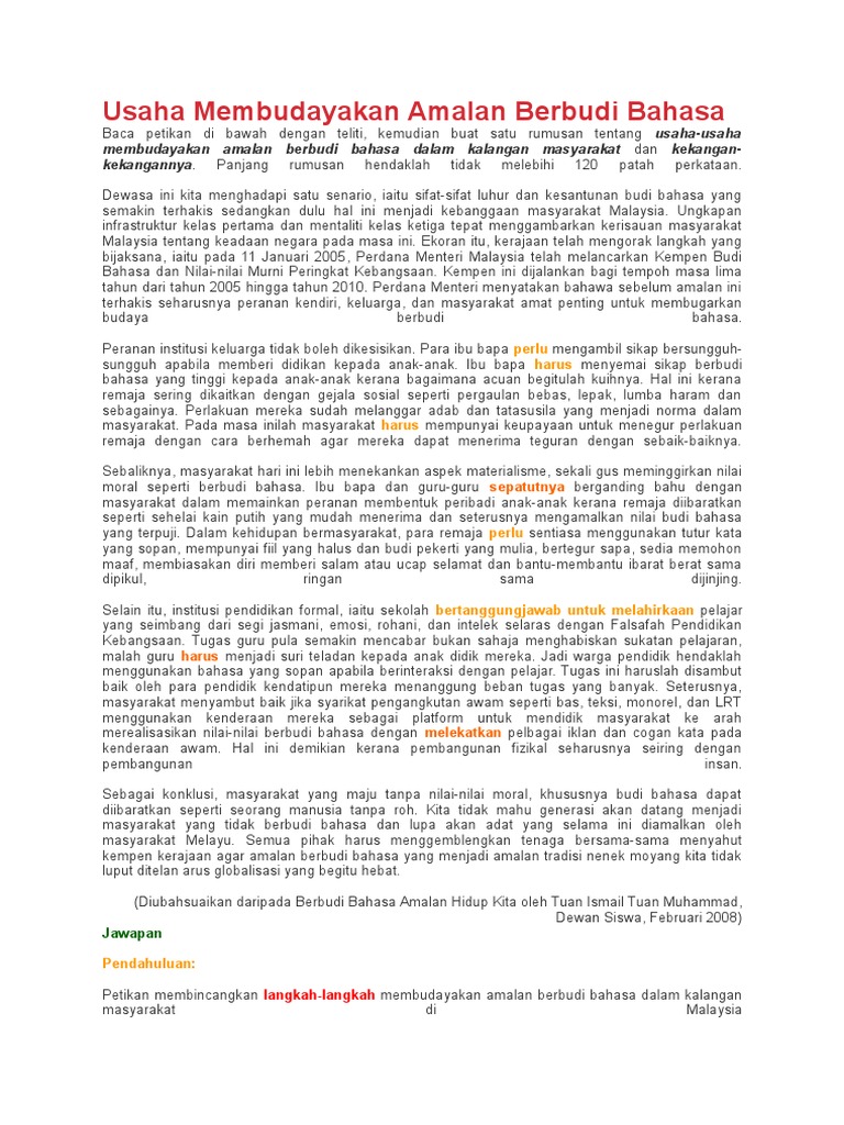 Karangan Bahan Rangsangan Bahagian A Kertas 1 Spm A