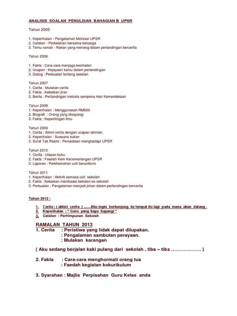Upsr Bahasa Melayu Karangan Contoh Soalan Ramalan Upsr Facebook