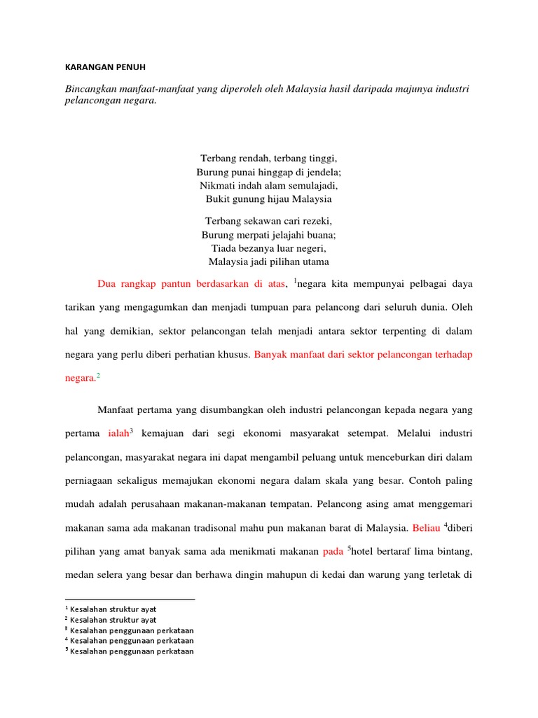 Contoh Karangan Bm Kepentingan Sektor Pelancongan Kepada Rakyat Dan Negara Wattpad