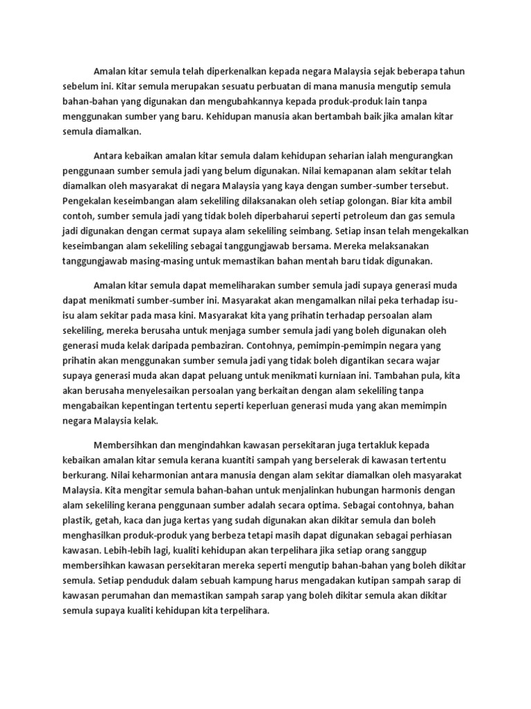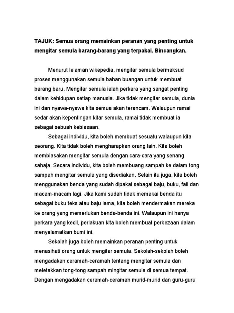 Contoh Karangan Pmr Kebaikan Kitar Semula