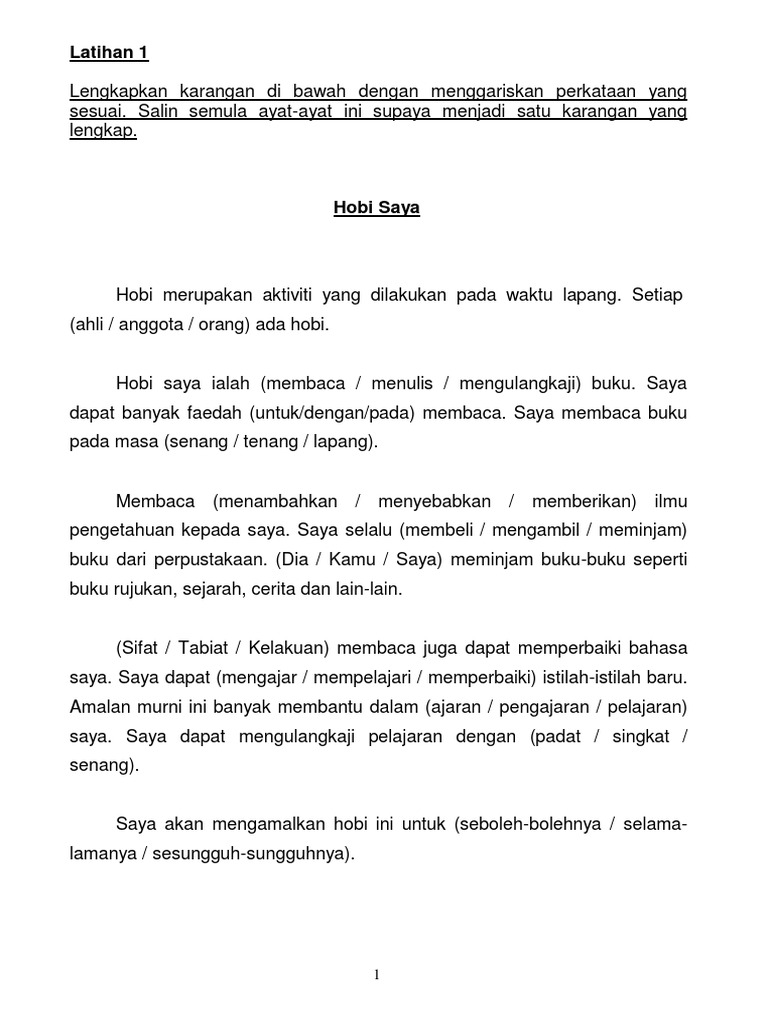 Koleksikarangan Murid Galus Docx Latihan 1 Lengkapkan Karangan Di Bawah Dengan Menggariskan Perkataan Yang Sesuai Salin Semula Ayat Ayat Ini Supaya Course Hero