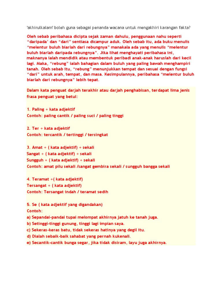 Akhirulkalam Boleh Guna Sebagai Penanda Wacana Untuk Mengakhiri Karangan Fakta