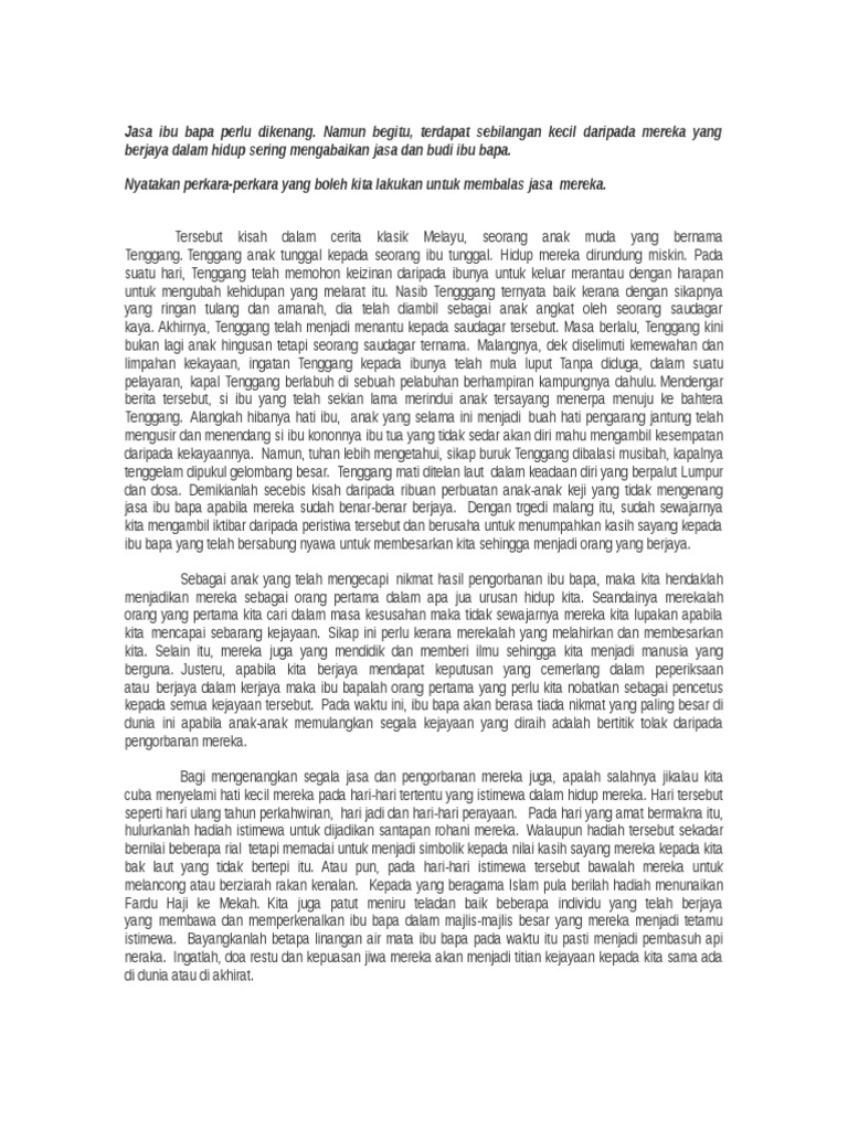 Contoh Karangan Cara Cara Menghargai Jasa Bu Bapa