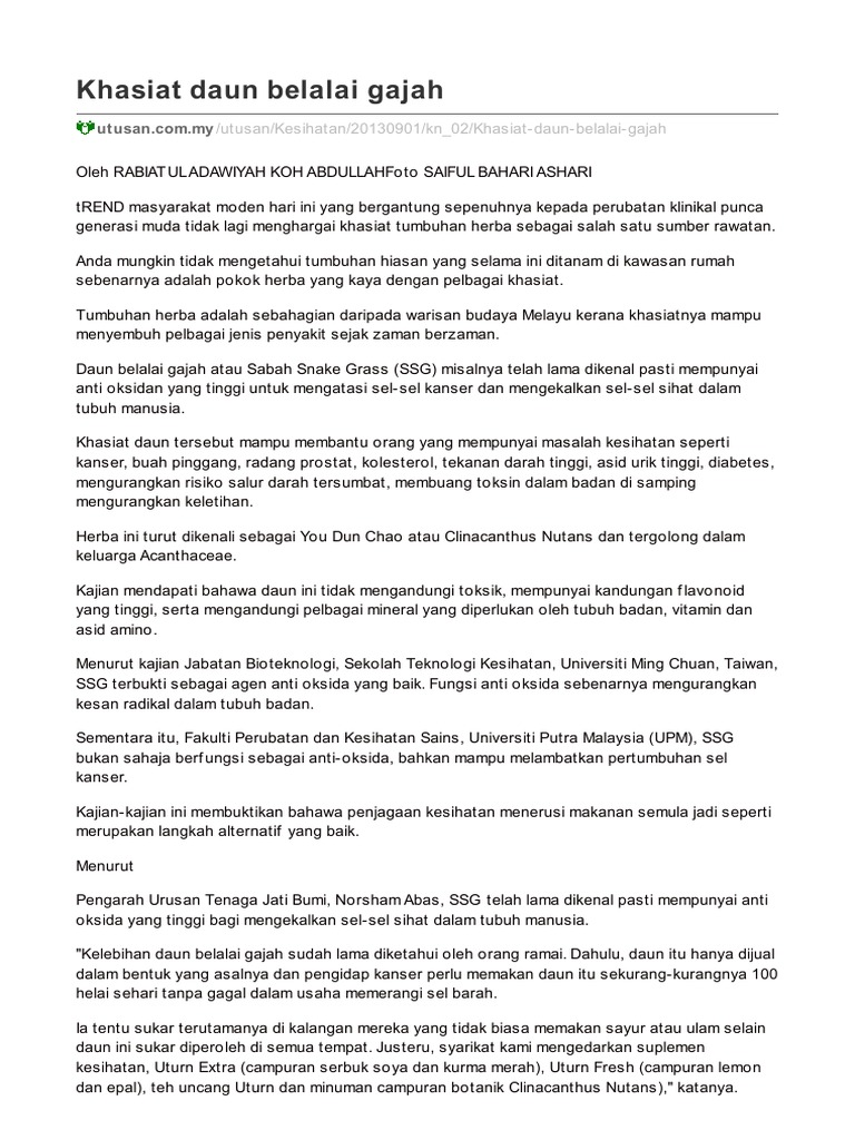 Pdf Petua Idea Dan Pandangan Khasiat Daun Belalai Gajah Pengalaman Pesakit Anuar Kassim Academia Edu