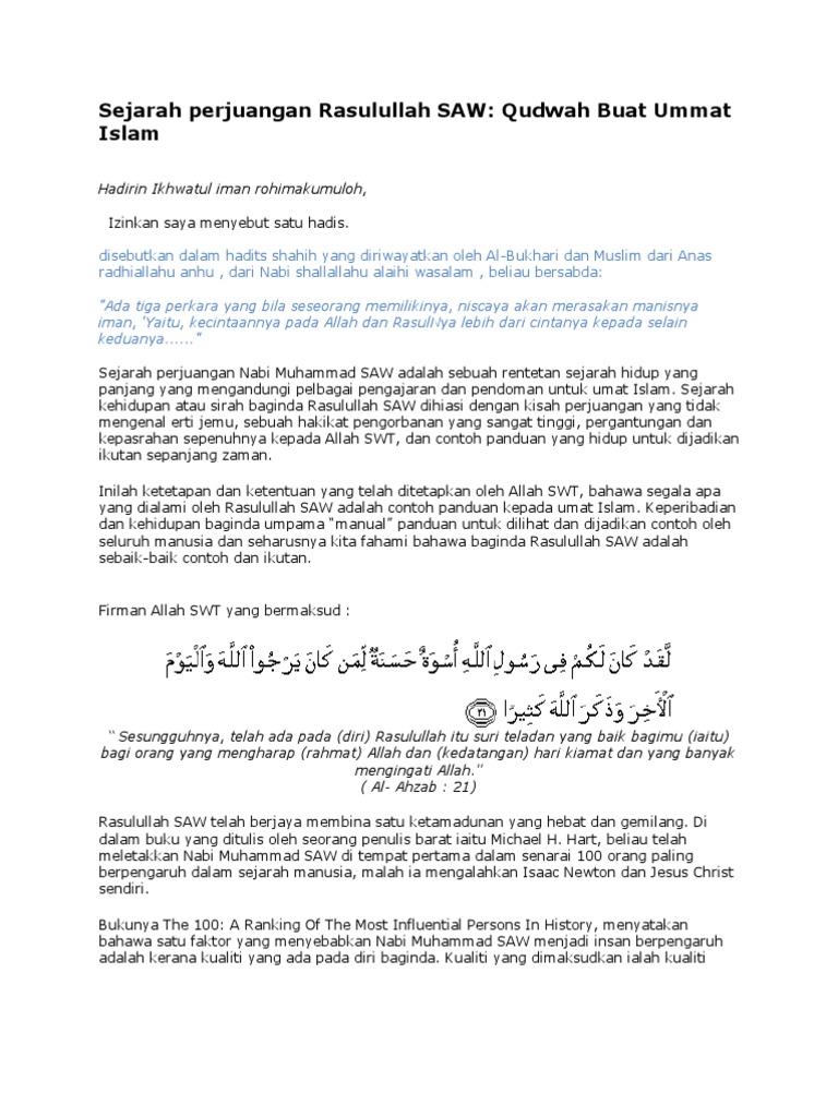 Rasulullah S A W Sebagai Model Utama Dalam Sistem Pentadbiran Dan Pem