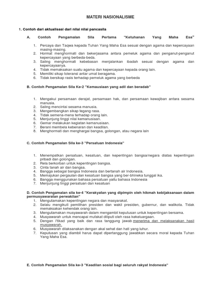 Materi Nasionalisme Contoh Dari Aktualisasi Dari Nilai Nilai Pancasila