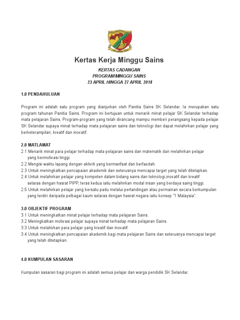 Kertas cadangan program minggu sains dan matematik 28 mac hingga 1 april 2011 1. Kertas kerja perkhemahan perdana 2013. Kertas kerja penganjuran karnival stem peringkat sekolah terima kasih tak terhingga juga kepada guru guru yang sudi menyumbangkan contoh kertas kerja ini bagi dijadikan rujukan oleh guru guru lain.