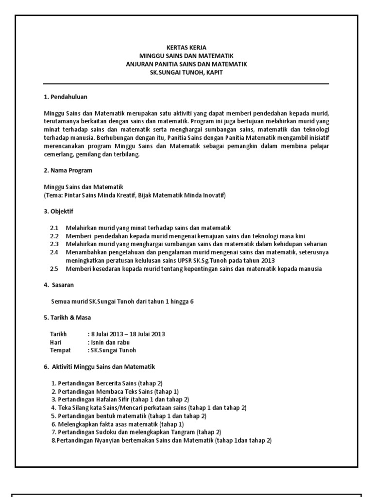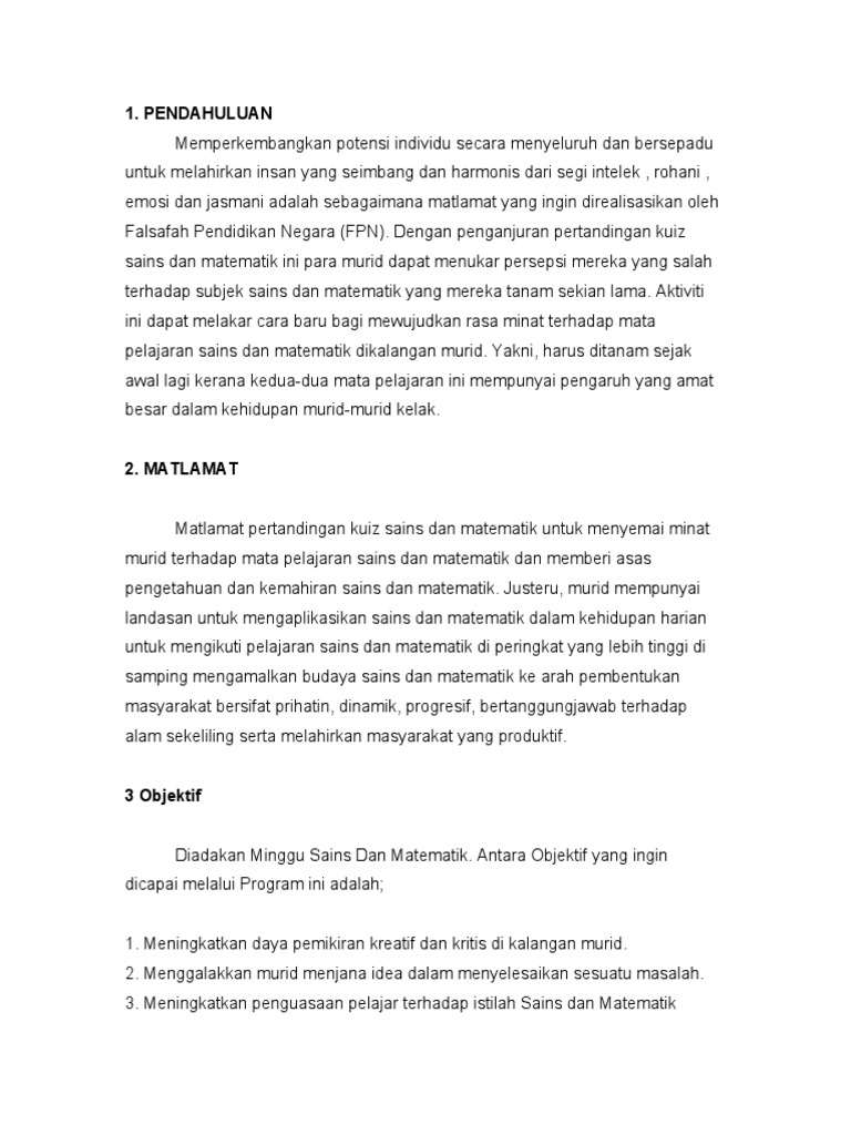 Download Kertas Kerja Sempena Bulan Sains Dan Matematik Doc