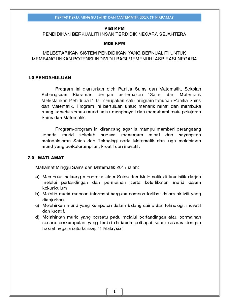 Kertas Kerja Minggu Sains Dan Matematik 2017