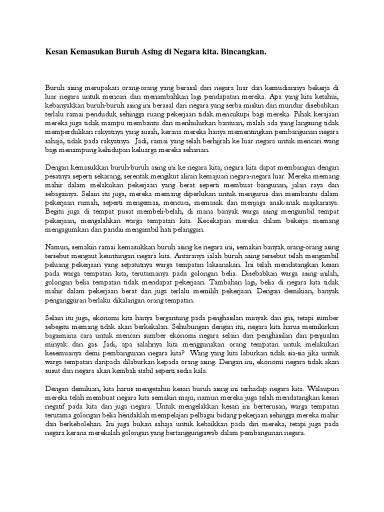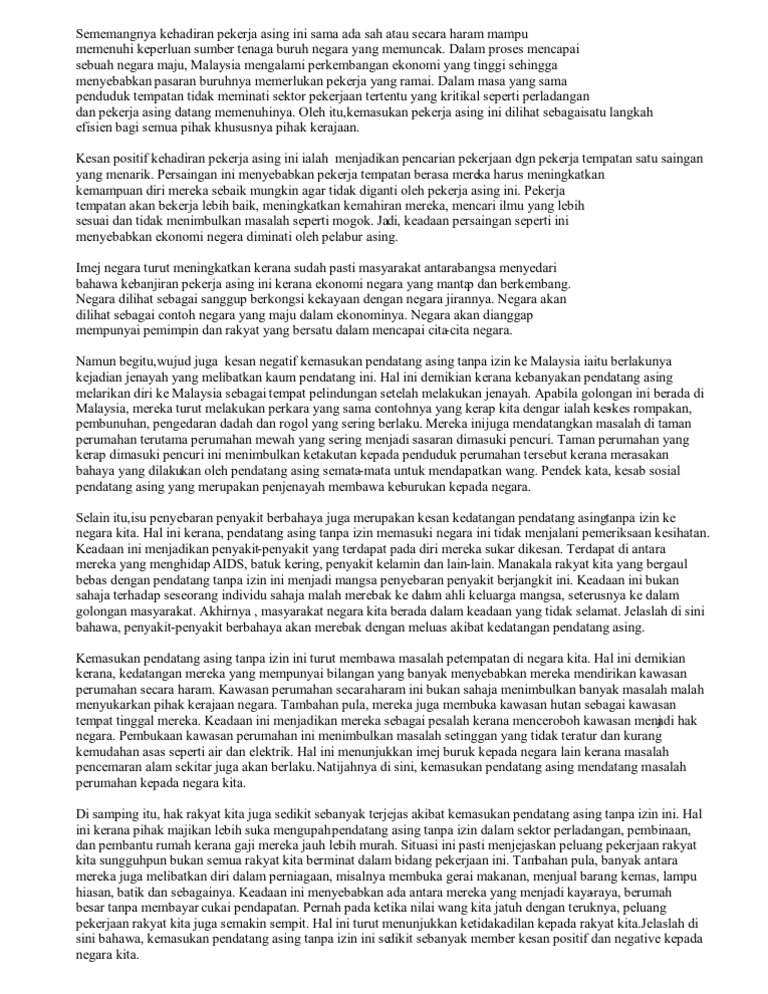 Contoh Karangan Bm Kesan Kemasukan Pendatang Asing Dan Cara Mengawal Kemasukkannya Wattpad