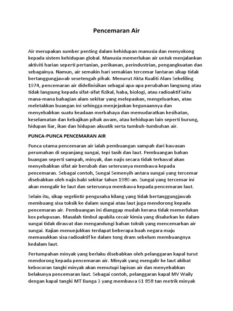Contoh Karangan Bahasa Melayu Upsr Karangan Fakta Punca Punca Berlakunya Pencemaran Malay Language Language