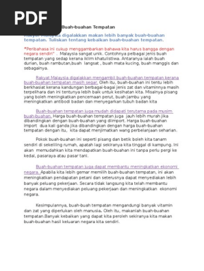Kebaikan Buah Buahan Tempatan Contoh Karangan Upsr