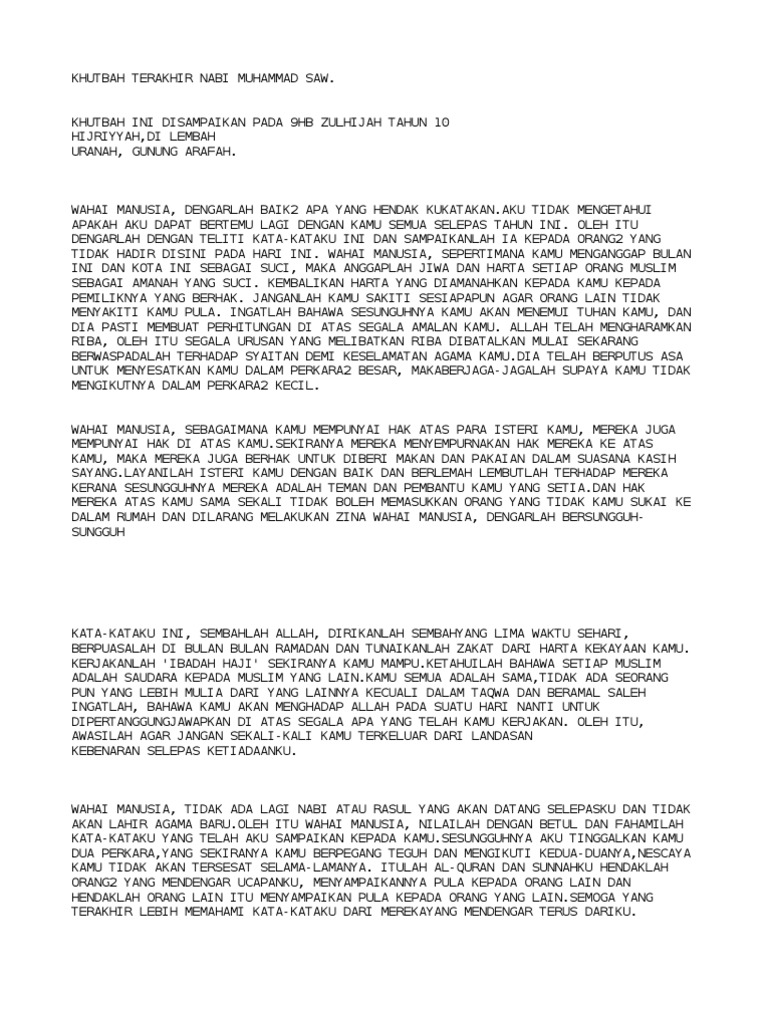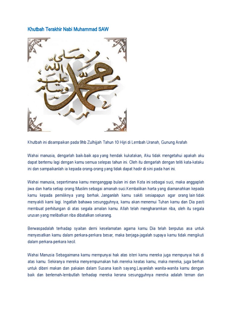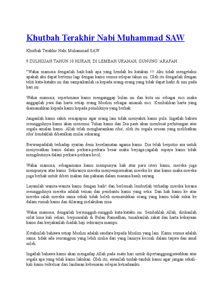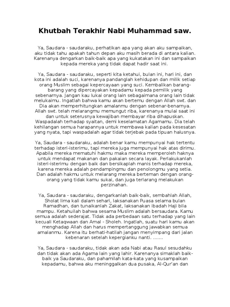 Kandungan Khutbah Terakhir Rasulullah S A W Azhan Co
