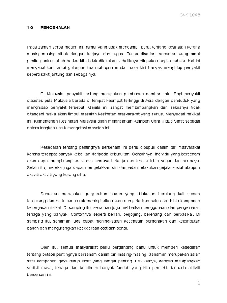 Esei Pendek Gaya Hidup Sihat Dan Penulisan Rfleksi