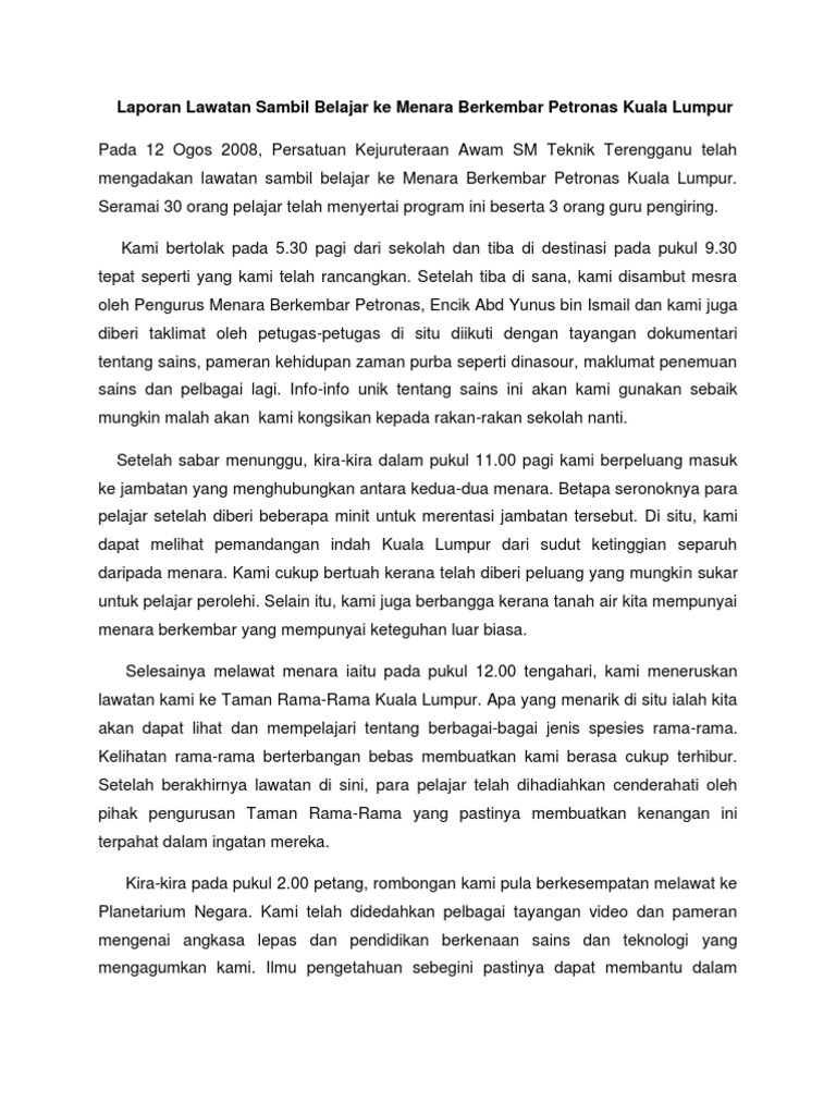 Karangan Laporan Lawatan Sambil Belajar Ke Kuala Lumpur Karangan Contoh Cikgugoh