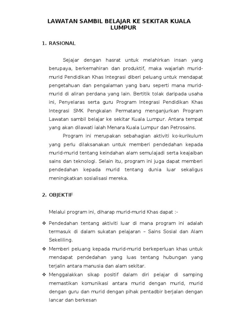Doc Lawatan Sambil Belajar Ke Kuala Lumpur Jegan Nathan Academia Edu