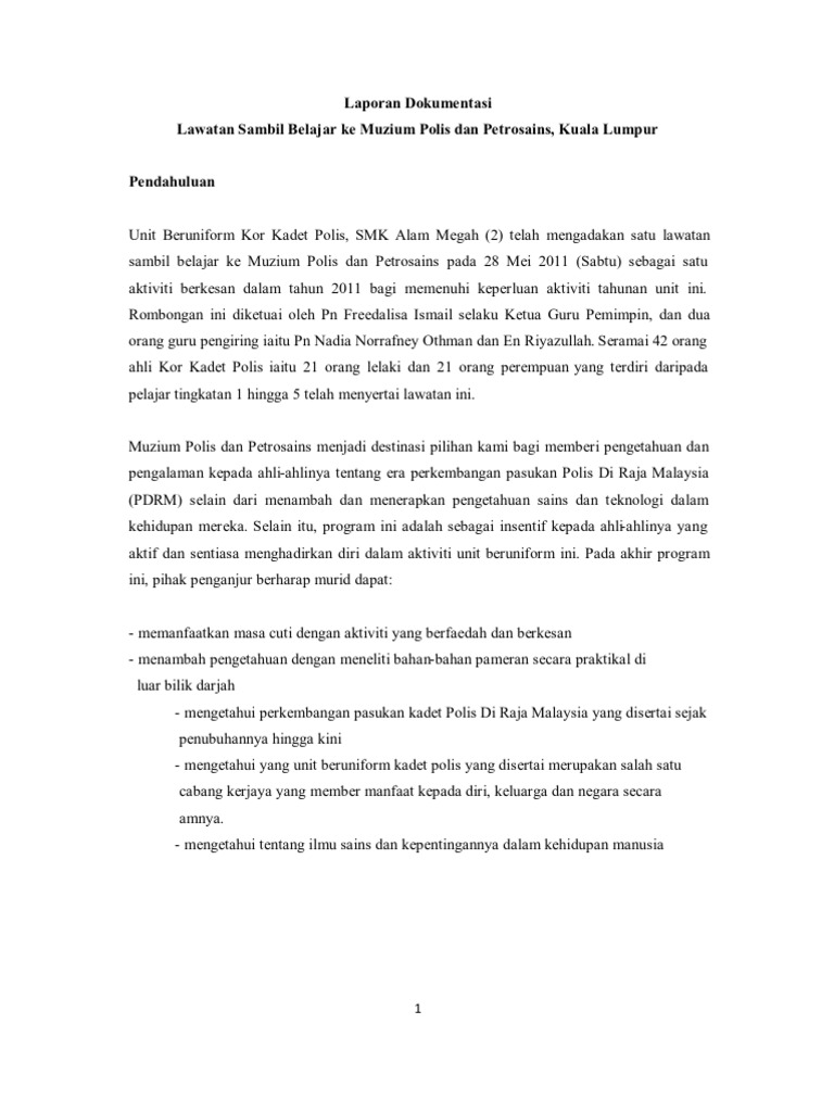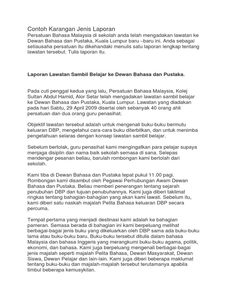 Contoh Karangan Laporan Pt3 Lawatan Sambil Belajar
