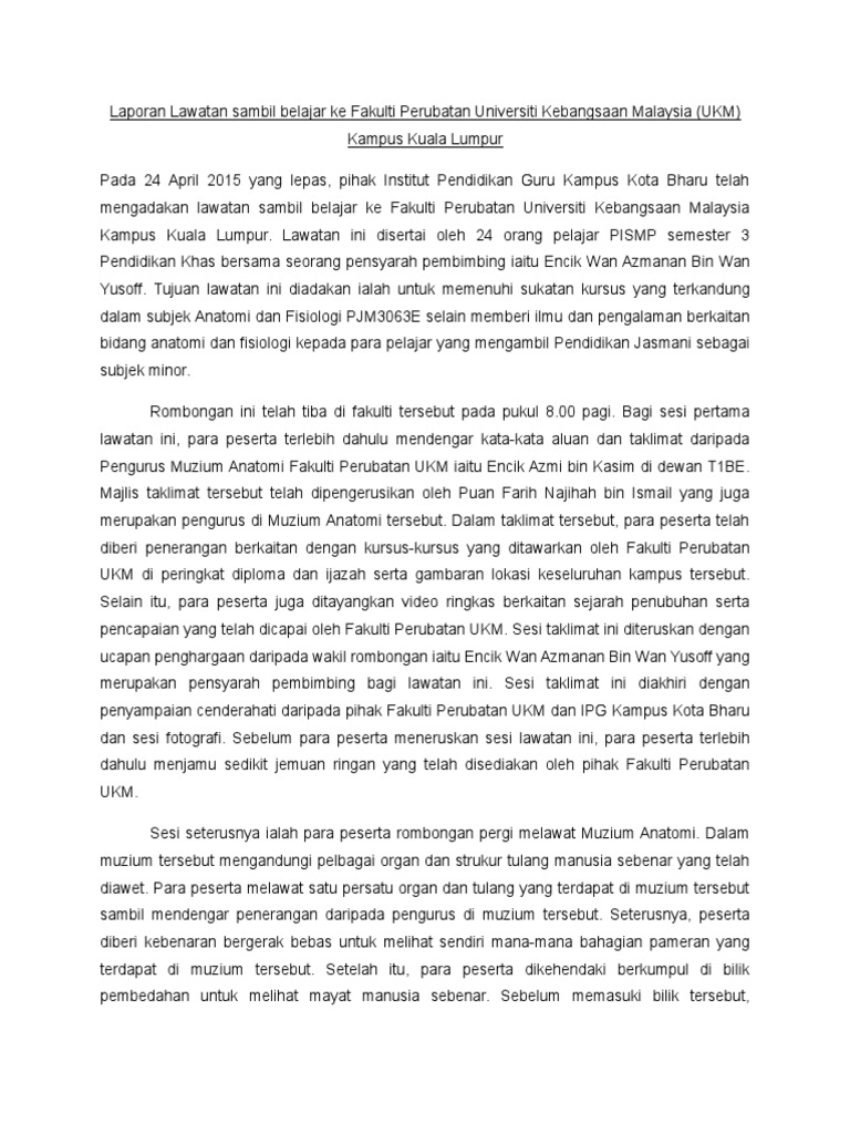 Laporan Lawatan Sambil Belajar Ke Fakulti Perubatan Universiti Kebangsaan Malaysia Docx