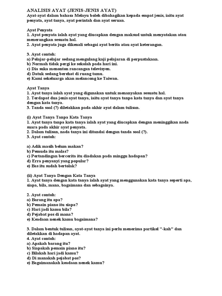 Nyatakan jenis jenis ayat di bawah. Jenis jenis ayat ayat ayat dalam bahasa melayu boleh dibahagikan kepada empat jenis iaitu ayat penyata ayat tanya ayat perintah dan ayat seruan. 2 sila masuk ke rumah saya.