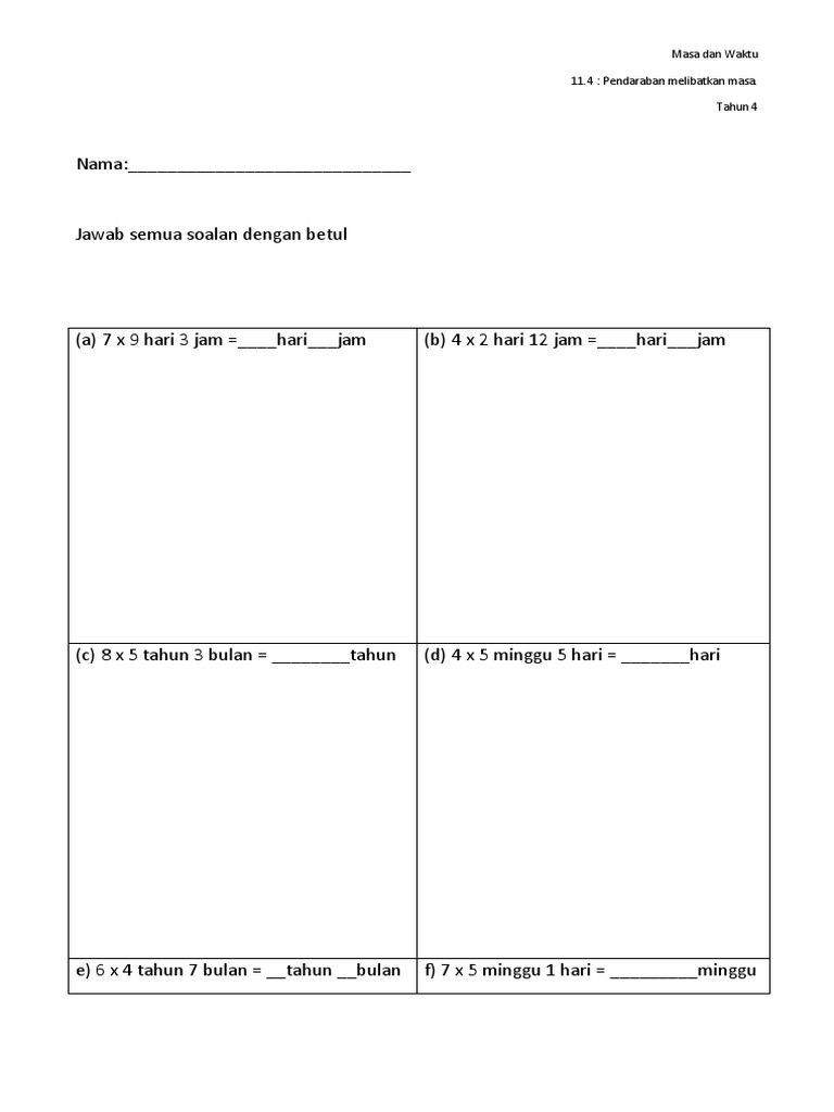 Lembaran Kerja Matematik Masa Dan Waktu Tahun 4