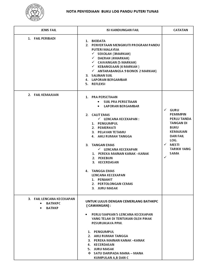 Nota Penyediaan Buku Log Pandu Puteri Tunas