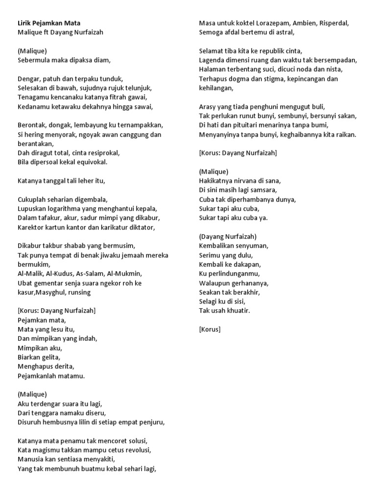 Malique Pejamkan Mata Lyrics Genius Lyrics