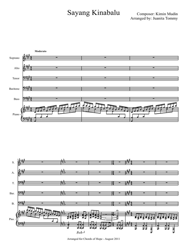 Muzik Sheet Sayang Kinabalu Compositions Music Performance