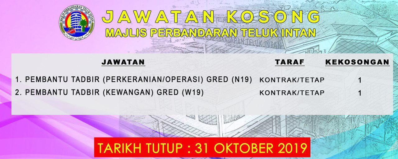 Jawatan Kosong Terkini Di Majlis Perbandaran Teluk Intan Mpti Kelayakan Spm Hingga Ijazah Tetap Berpencen Jobcari Com Jawatan Kosong Terkini