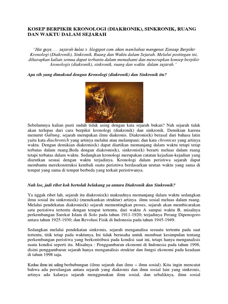 Memahami Konsep Berpikir Kronologis Diakronik Sinkronik Ruang Dan Waktu Dalam Sejarah Sejarah Indonesia Kls X Ipa
