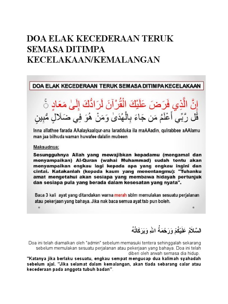 Doa Elak Kecederaan Teruk Semasa Ditimpa Kecelakaan