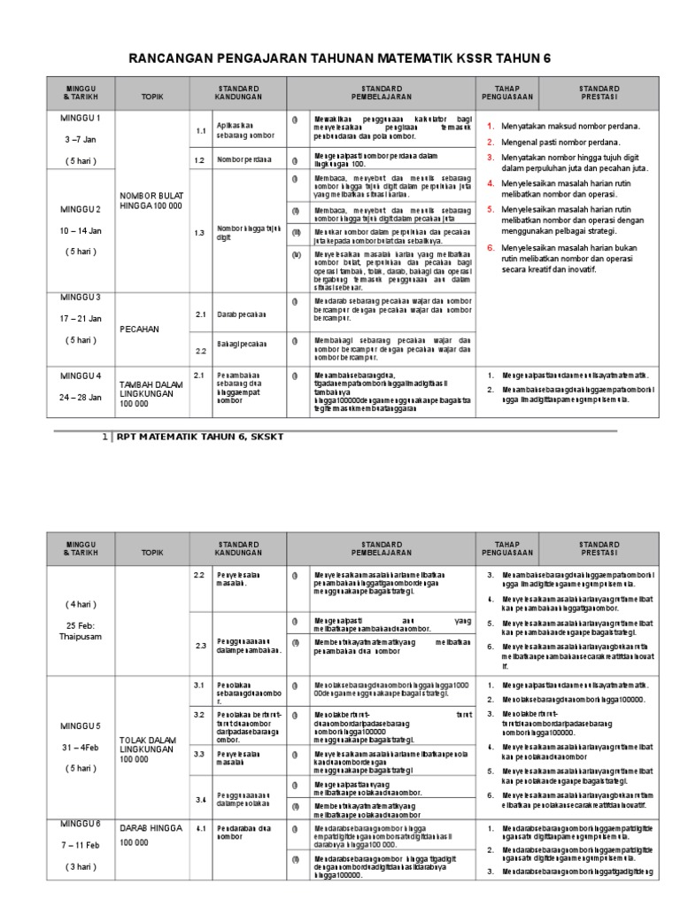 Rpt Kssr Tahun 6 Matematik