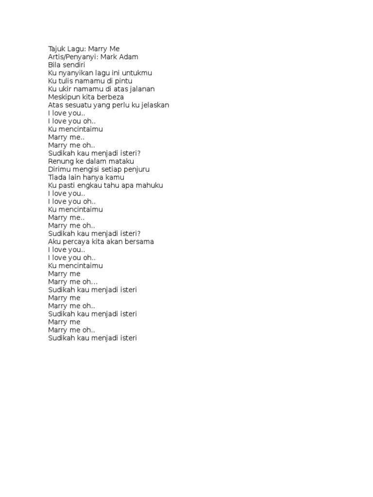 Lirik Lagu Mark Adam Marry Me English Version Mark Adam Wattpad