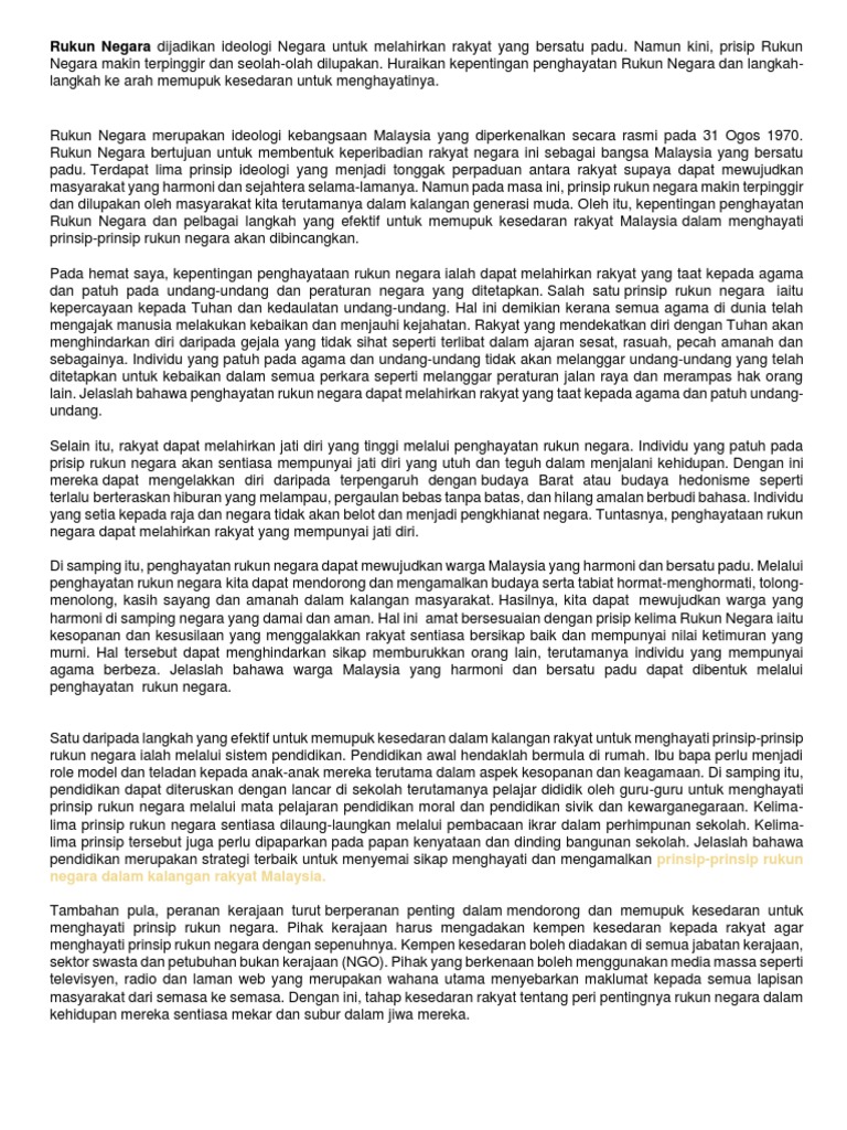 Soalan Esei Rukun Negara Pdf 1 Soalan Esei Nyatakan Cara Bagaimana Rukun Negara Boleh Menjadikan Malaysia Sebagai Sebuah Negara Yang Maju Sebagaimana Course Hero