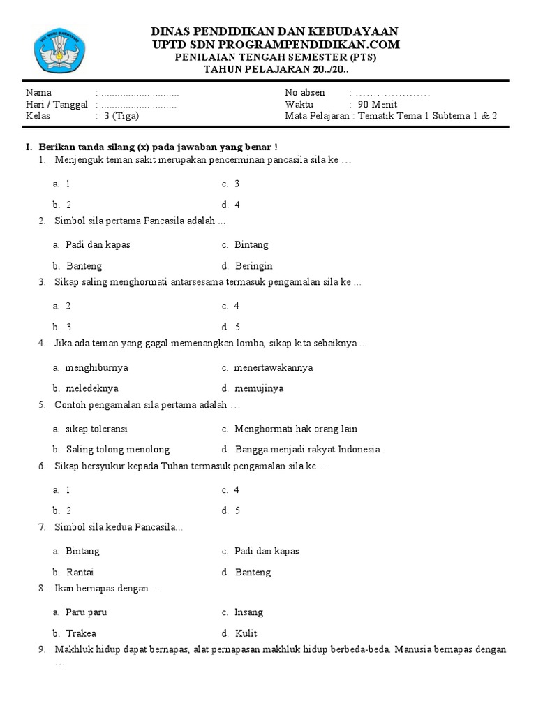 Sd Inpres Salor 1 Penilaian Tengah Semester Tahun Pelajaran 2019 2020