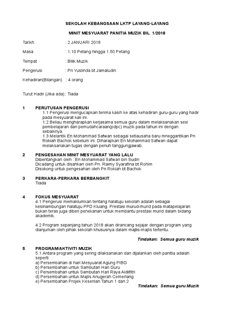 Doc Pk 07 3 Sekolah Kebangsaan Bukit Kepong Minit Mesyuarat Panitia Pendidikan Muzik Bil 1 2018 Aqmarrina Kamarudin Academia Edu