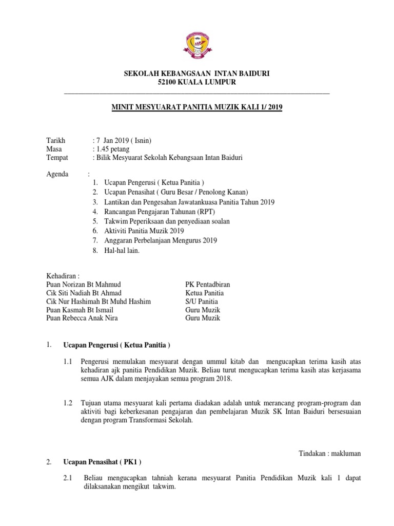 Doc Minit Mesyuarat Panitia Muzik Kali Pertama Hasni Abdul Hamid Academia Edu