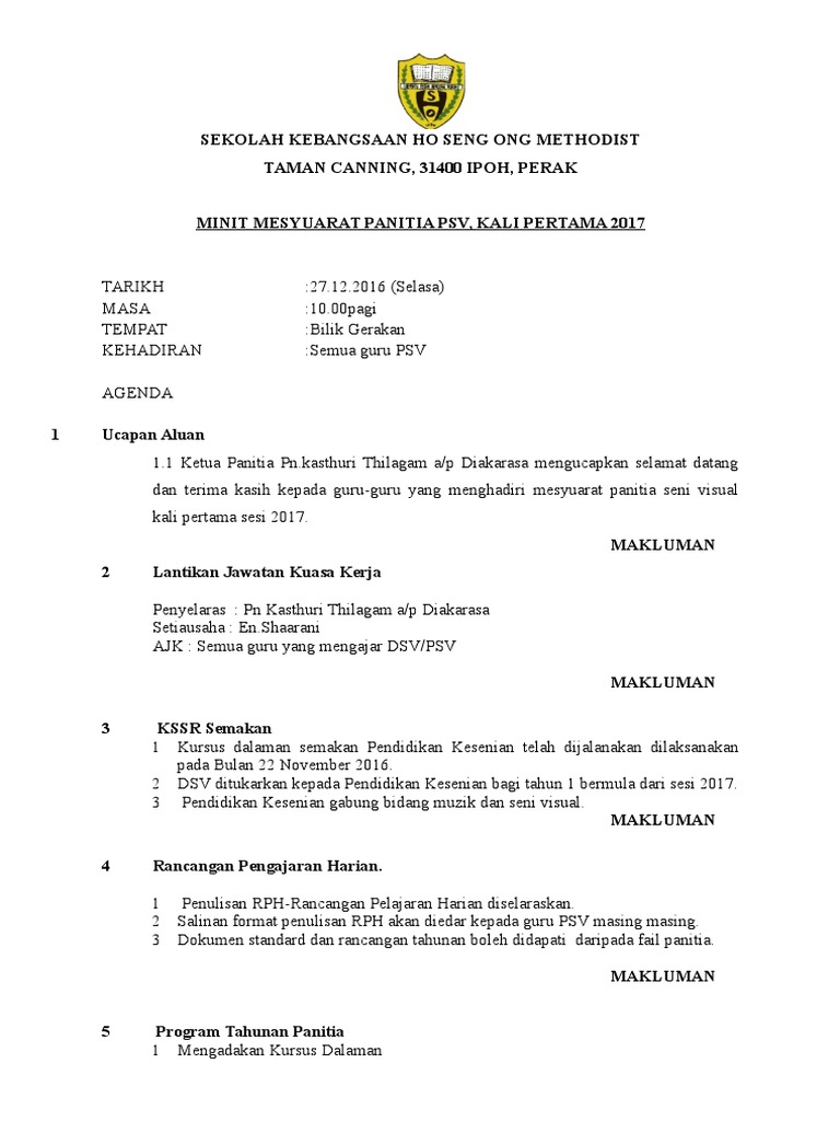Doc Minit Mesyuarat Jawatankuasa Kurikulum Kali Pertama 2014 Sekolah Kebangsaan Sungai Rokam Lokman Noor Academia Edu