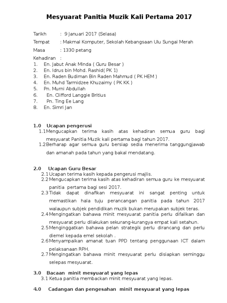 Minit Mesyuarat Panitia Muzik Kali 1 2017 Doc