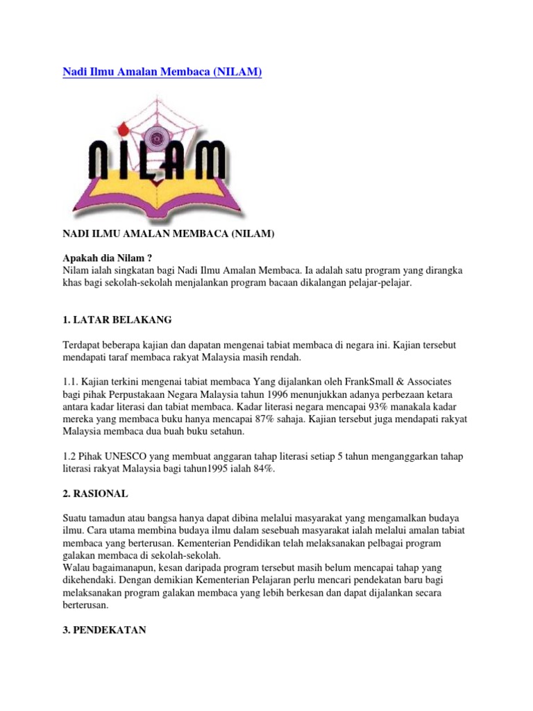 Nilam Atau Nadi Ilmu Amalan Membaca Merupakan Penggabungan Atau Adunan Semua Aktiviti Galakan Membaca Yang Pernah Dijalankan Di Sekolah