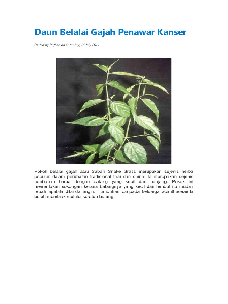 Khasiat Daun Belalai Gajah February 2016